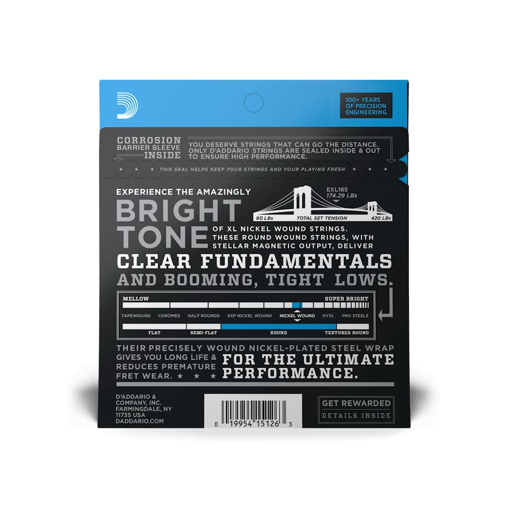 In stock now: D’Addario EXL165 Nickel Wound Bass, Custom Light, 45-105, Long Scale