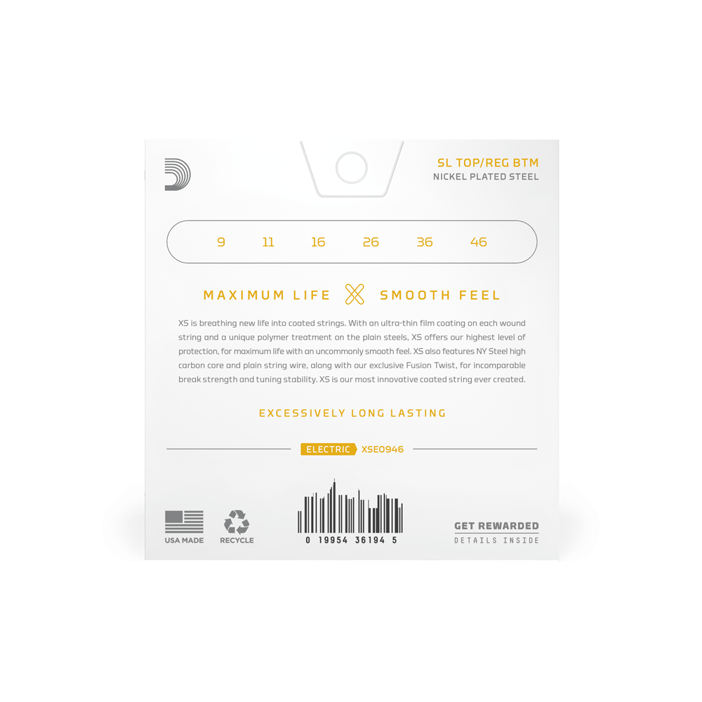 The D’Addario XS Nickel Coated Electric Guitar Strings offer the longest lifespan in D’Addario’s electric guitar string lineup.